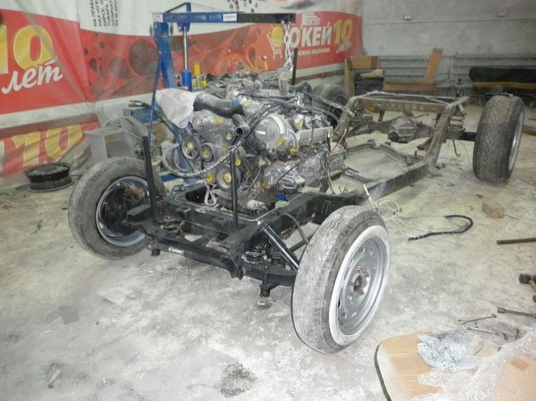 Многие части автомобиля находились на разборах, подгонялись, дорабатывались, и устанавливались на автомобиль. В итоге насчитали запчастей, примерно от 20 разных марок.