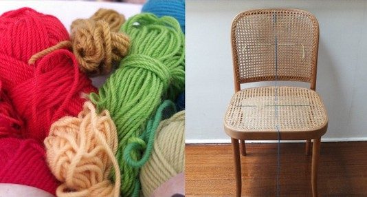 Будет очень хорошо, если задняя стенка обновленного стула будет выглядеть красиво, без всяких узлов для крепления нитей.