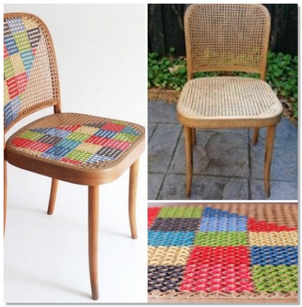 Обновить стул вышивкой крестом сможет любая рукодельница, ведь в доме всегда найдется достаточное количество маленьких кусочков пряжи. Такой способ обновления подойдет не только для плетеного стула, но и для кресла из ротанга, дачного шезлонга, или любой плетеной мебели.