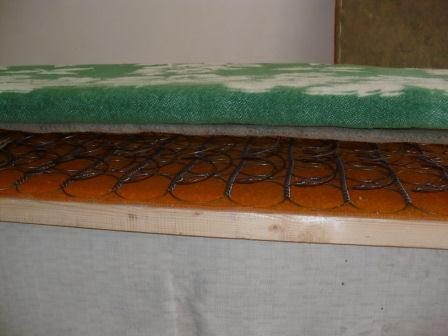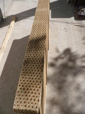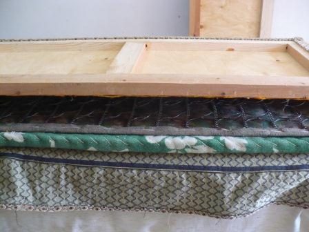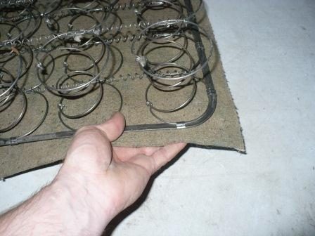 По размерам верхней части пружинного полотна вырезаем палас с припуском в 4-5 см с каждой стороны.