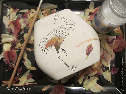 Раньше я «рисовала» лепестками по непрозрачным поверхностям, и приходилось использовать копирку, рисовать контур, чтобы перевести рисунок, а в случае с прозрачной поверхностью всё намного облегчается!