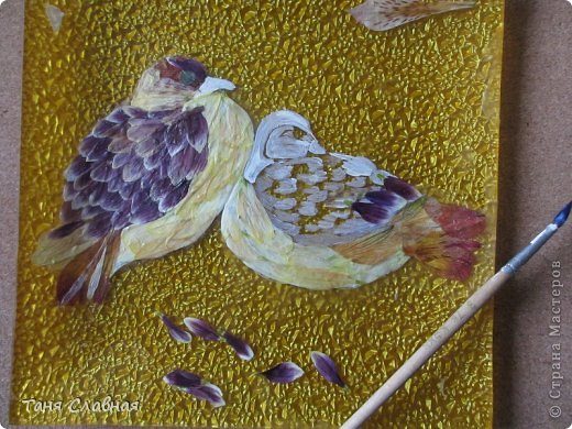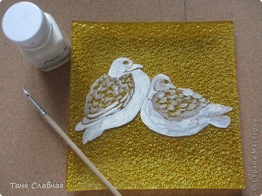 А теперь за работу: с помощью белой краски нанесла контур птичек.