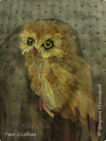 Вот такой совенок на просвет, еще в процессе наклейки.