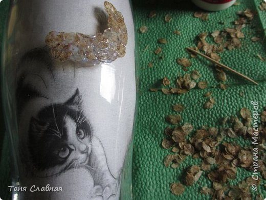Бокал с совушкой. Всё по той же схеме: обезжиренная тара; понравившееся изображение, вложенное внутрь.