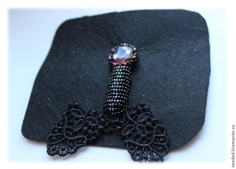 Пришиваем кружево, а также пару бусин-кристаллов в форме капли рядом с головой.