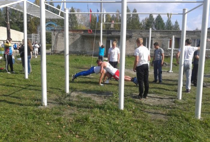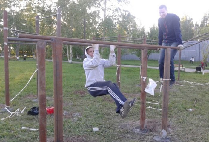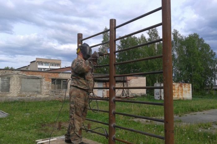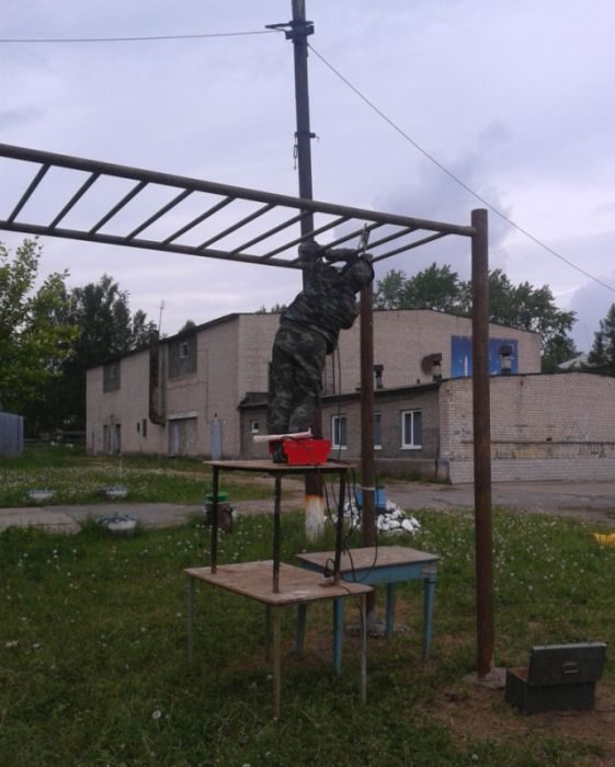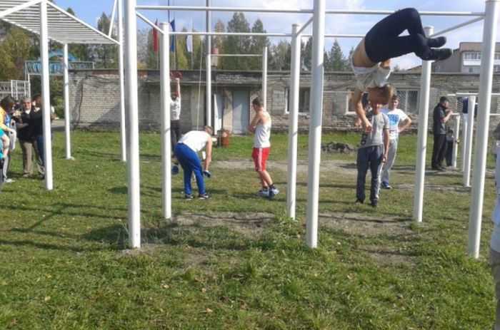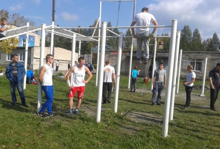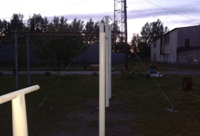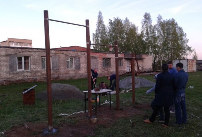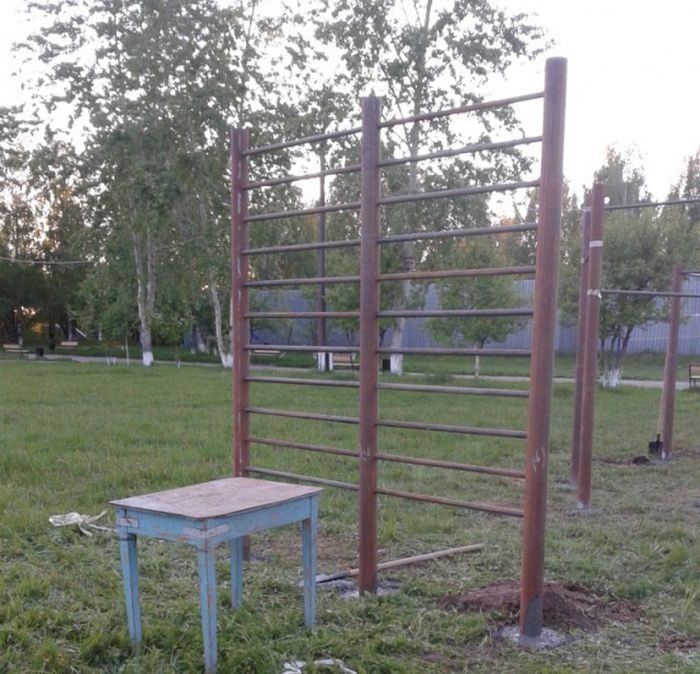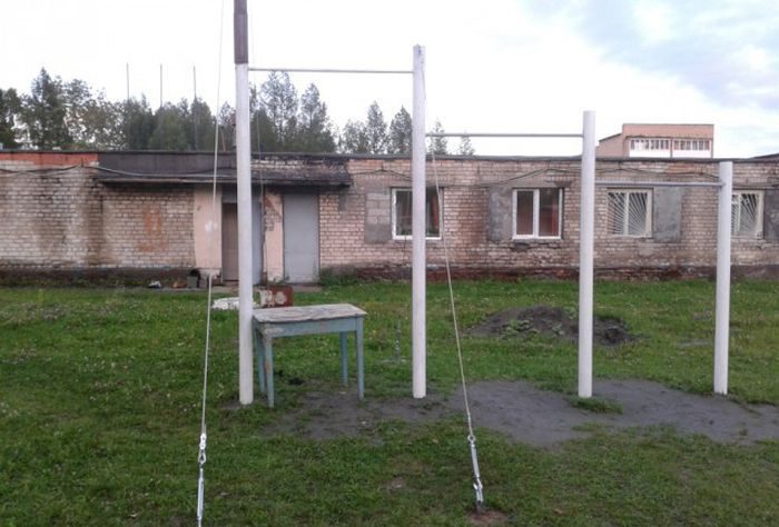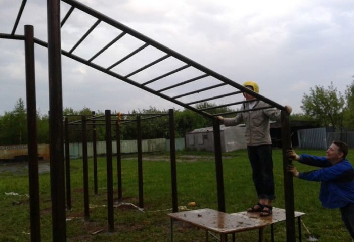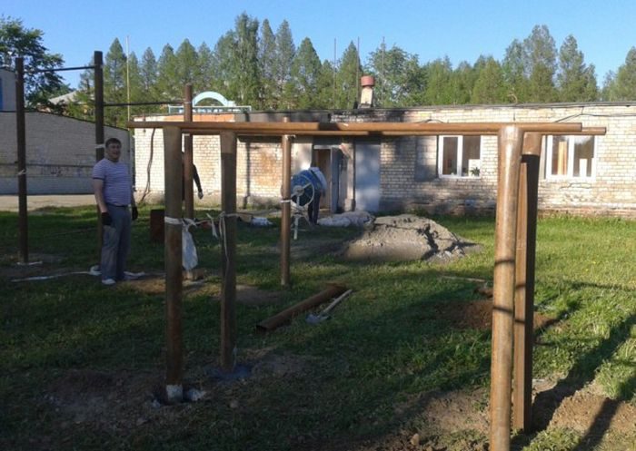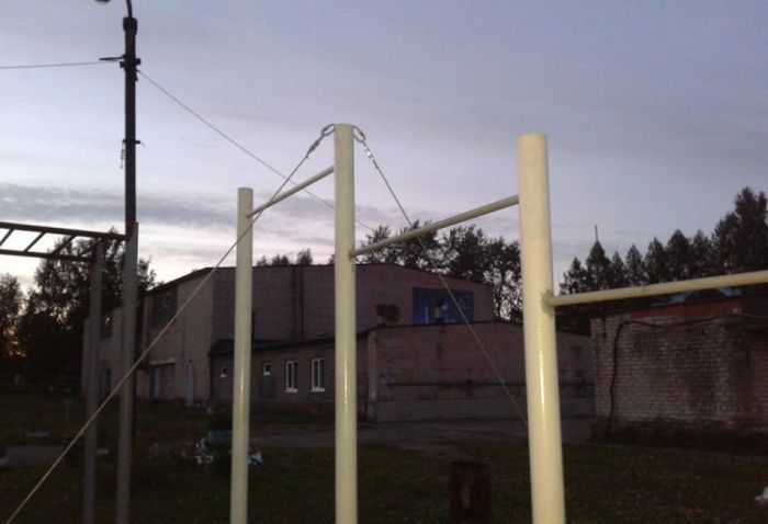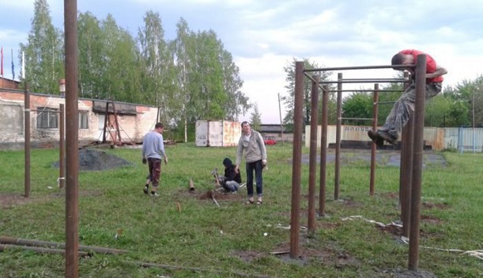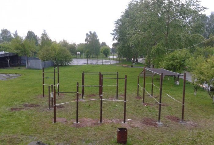 После неоднократных писем в местную администрацию с просьбой организовать спортивную площадку, которые не привели ни к какому результату, было решено сделать место для занятия спортом своими руками. Ну, что тут еще добавить? Так держать, просто пять баллов!