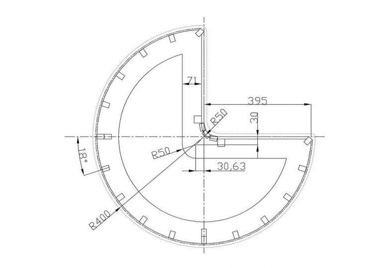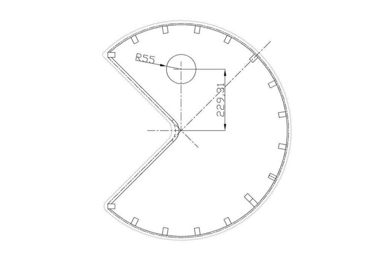 Отступите от внешней кромки дуги 7 см и начертите еще одну кривуюРазметьте точки, в которых будут устанавливаться вертикальные стойки.