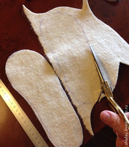 Так как я отличаюсь повышенной мерзлявостью, то из ненужного кусочка войлока, свалянного когда-то для образца, выкроила стельки по ноге и вставила внутрь чуней. Теперь они будут еще теплее и быстро не проносятся.
