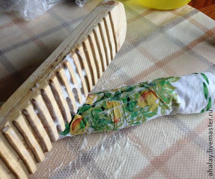Аккуратно накладываем ткань на нашу заготовку, пеленаем ее без лишних складок и заломов. Тут придется немного повозиться.