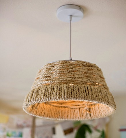 Веревочный абажур отлично впишется в интерьер любой кухни, или же в любую комнату загородного домика или дачи.