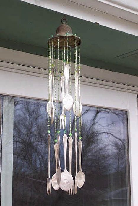 Более миниатюрный вариант для маленьких помещений – подвеска, составленная из двух рядов нитей с вилками и ложками. На ветру она будет издавать приятный мелодичный перезвон.
