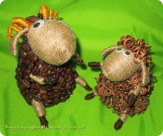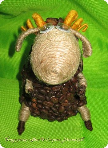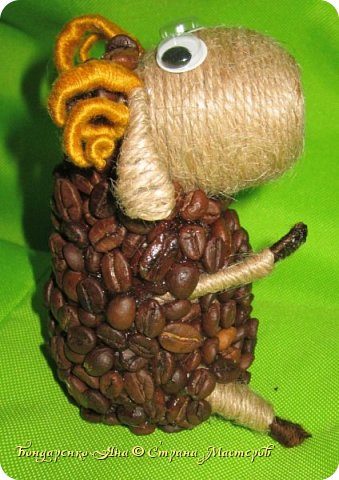 Теперь начинается самая кропотливая но не менее интересная работа — одеваем нашего барашка в кофейную шубку:
