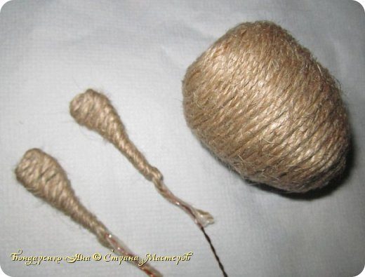 Далее наматываем шпагатом, но серединку можно оставить пустой — это место крепления к туловищу.