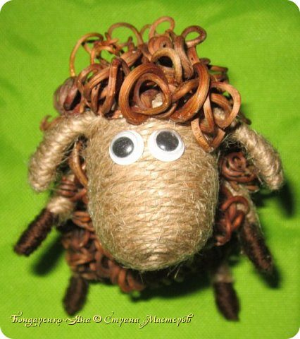 И когда «кудряшек» приготовлено уже достаточно, «наряжаем» нашу овечку ( с помощью клея Титан)