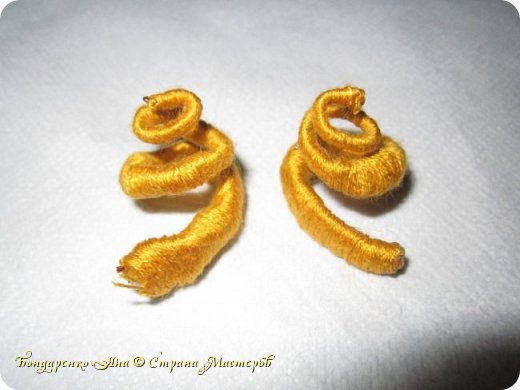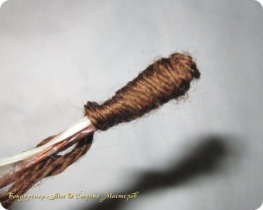 На концах проволоки мы вот таким образом наматываем коричневые нитки: