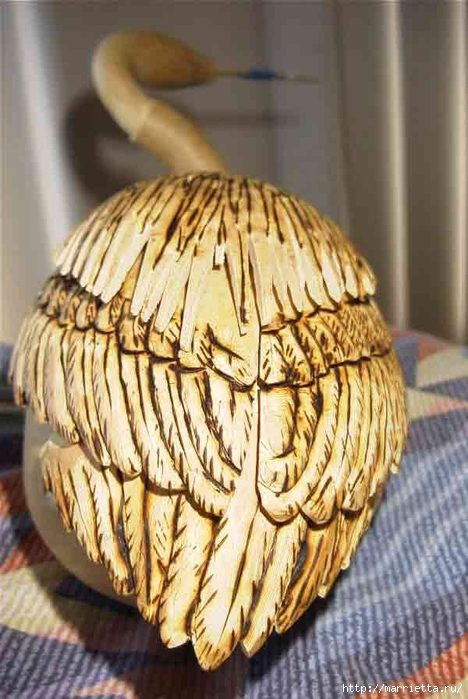 В работе также применили ножи для карвинга, проволоку, медные трубки, папье-маше, полимерную глину и акриловые краски.