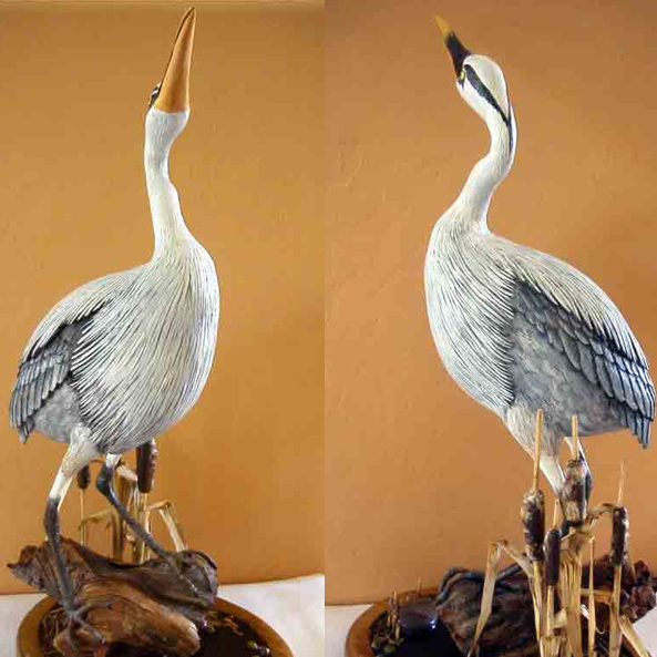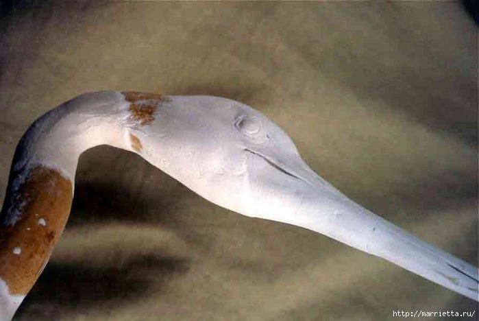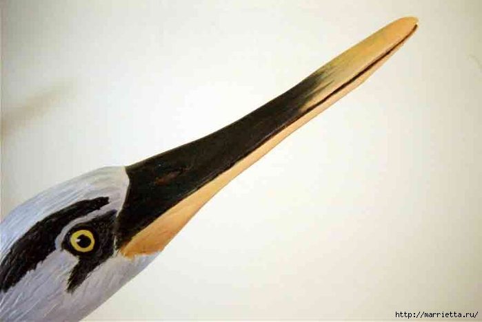 Для создания такой красоты использована тыква, соответствующая формам птицы. Для оперения цапли применили добавочную тыкву.