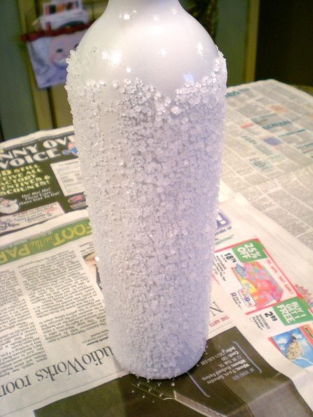 Промазанную клеем бутылку надо равномерно обвалять в морской соли и оставить до полного высыхания.