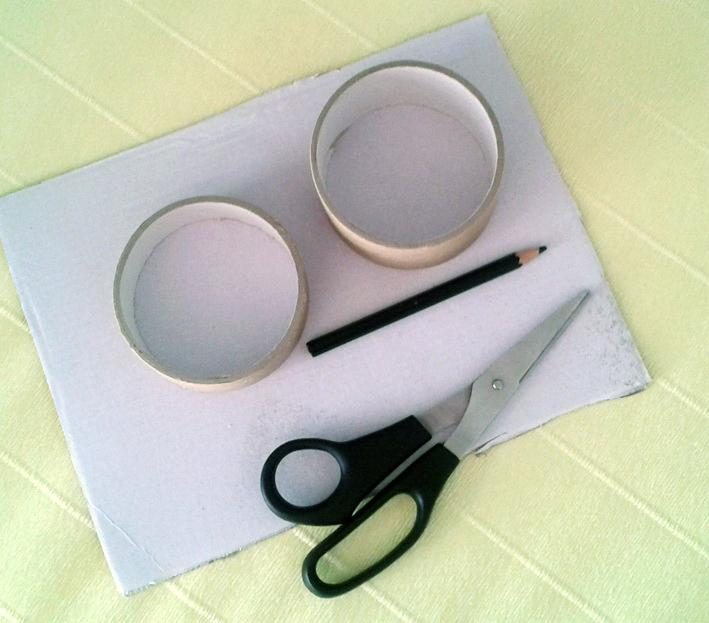 Начнем с изготовления основы шкатулки. Для этого нам понадобятся две бобины от скотча (пошире для основания, поуже для крышки), плотный картон и ножницы.