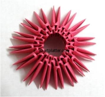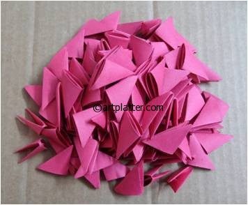 Первый урок самый сложный в воплощении. Но от этого только интересней! Чтобы собрать этот цветок, вам понадобится большое количество треугольных деталей (по 95 на каждый цветок). Делаются они следующим образом: