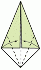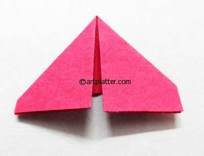 4. Переверните фигуру на обратную сторону и сложите вдвое по длине, подняв нижний угол к верхнему.