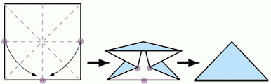 3. Сверните квадрат в треугольник так, чтобы две боковые точки сошлись на нижней.