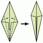 4. Поднимите боковые углы верхнего слоя фигуры наверх вдоль центральной линии. Затем переверните фигуру и проделайте то же самое с другой стороны.