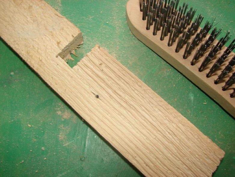 Теперь обратимся к технике состаривания дерева под названием браширование. Суть заключается в удалении мягких волокон, за счет чего дощечки выглядят гораздо красивее.
