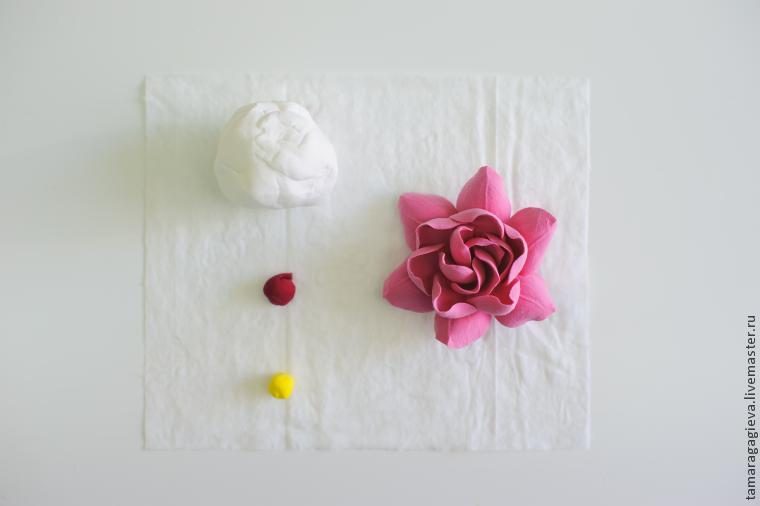 В работе я использую влажные салфетки, так как глина «CLAYCRAFT by DECO» застывает на воздухе (полное высыхание за 24 часа). Чтобы слепить цветок, нужно это сделать или очень быстро, или использовать влажные салфетки (что советую).