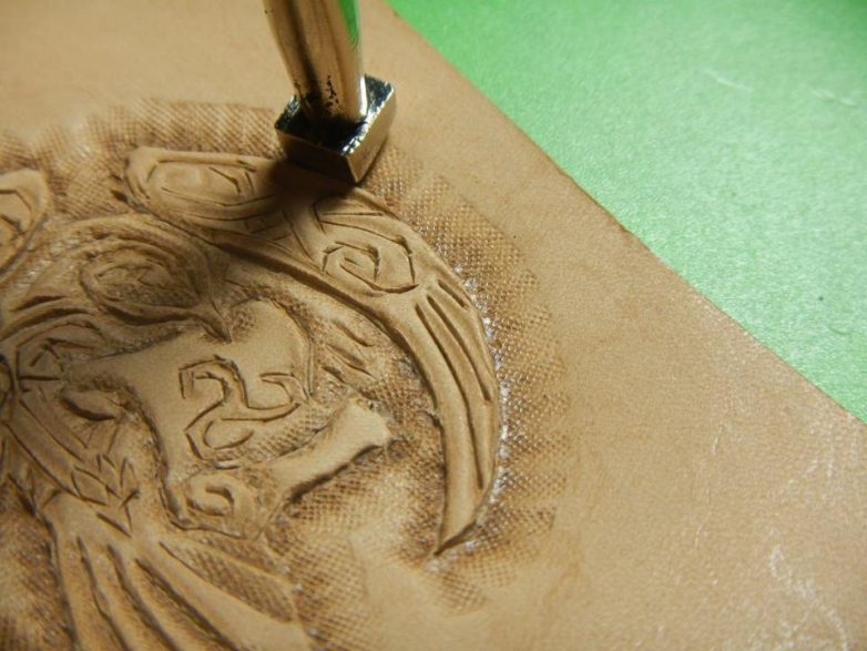 Прорези должны быть не меньше 1/3 толщины кожи. Если резануть слишком сильно — кожа прорвется и будет испорчена. Если слишком слабо — рисунок будет плохо тесниться.