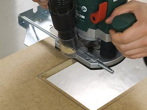Введите полотно (лобзик находится в выключенном состоянии) в одно из отверстий. Теперь вырезайте продольные проёмы по линии разметки от отверстия к отверстию. Скруглите ли вы углы или оставите их — решать вам. При наличии вертикальной фрезерной машины с параллельным упором вы можете выполнить вырезание проёмов с её помощью.