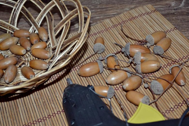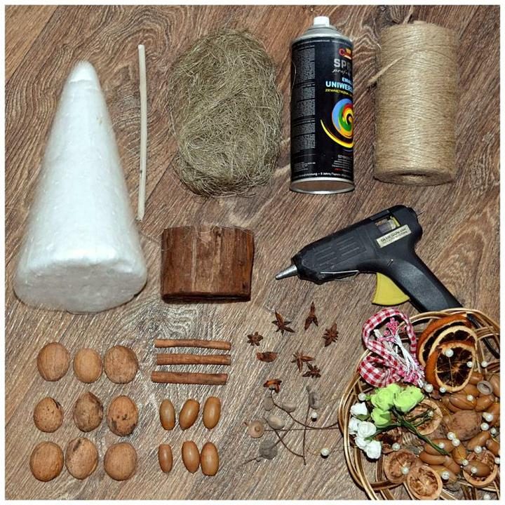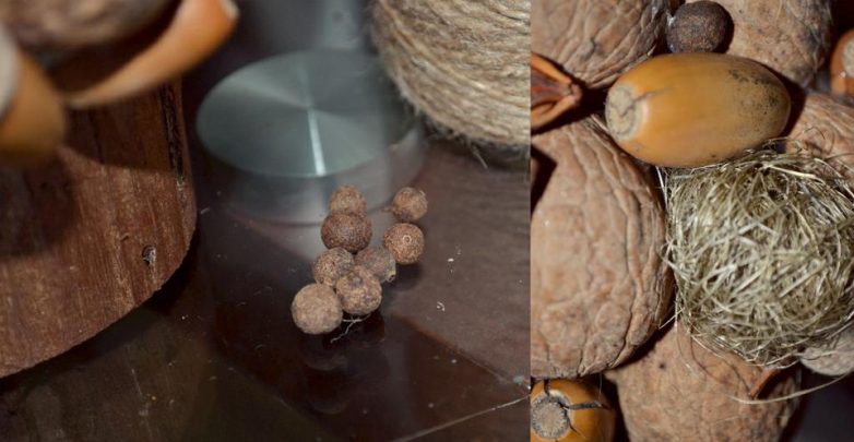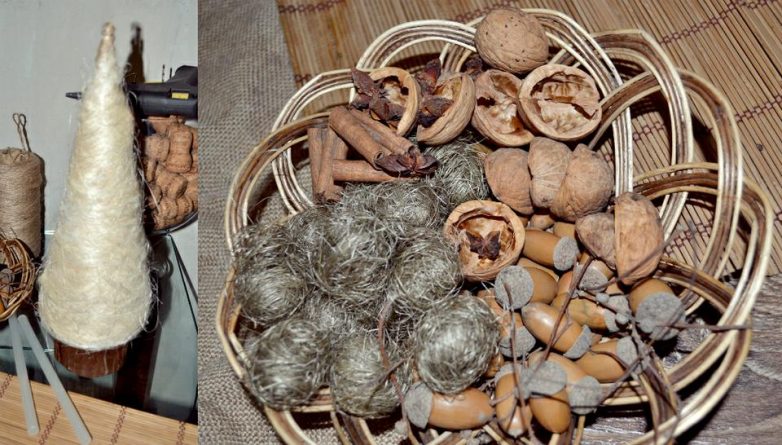 скорлупа от грецких ореховжелудишарики из сизалянебольшие палочки корицыбадьян