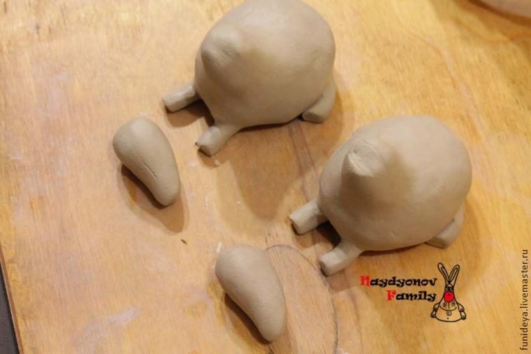 На «тушках» срезаем лишнюю глину, для того, чтобы легче было крепить голову.