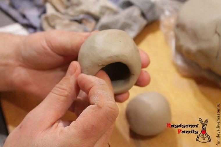 Так как наши сувениры — колокольчики, делаем заготовки полыми внутри.