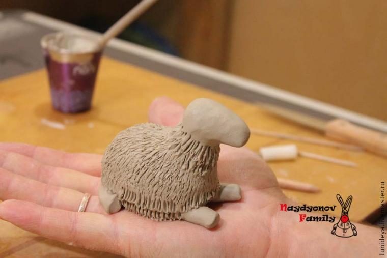 Для лепки нам понадобится белая глина, шликер, сито для прически овечки, тряпка для рук, ножик, иголка, а также стеки, которые можно сделать самому из кисточек или приобрести в любом художественном магазине уже в готовом виде.