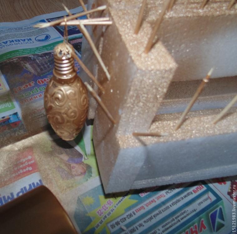 Красим спреем и подвешиваем так, чтобы наша новая игрушка не касалась никакой поверхности.