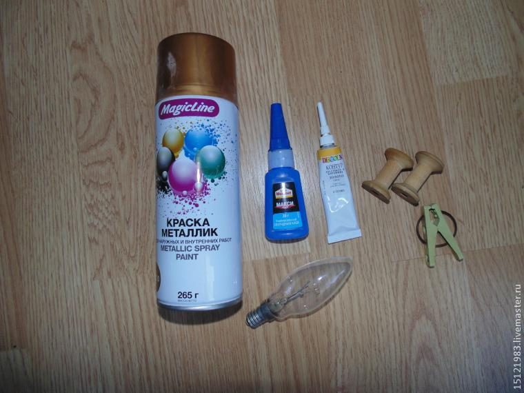 Лампочку перед покраской лучше обезжирить, и можно ее сразу надеть на прищепку.
