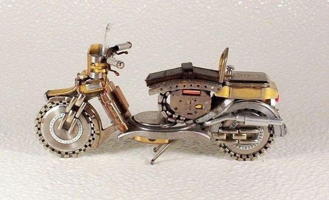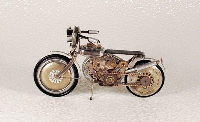 Так и родилась идея создавать интересные миниатюрные модели мотоциклов из наручных часов. В личной коллекции Жозе около 250 моделей. Пока они не продаются, но Жозе Пфау надеется когда-нибудь устроить аукцион