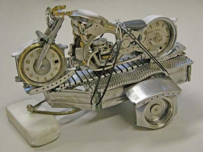 И вот однажды, навещая друга, и смотря на гору ненужных, но красивых часов, в голову Жозе пришла мысль смастерить что-нибудь из них.
