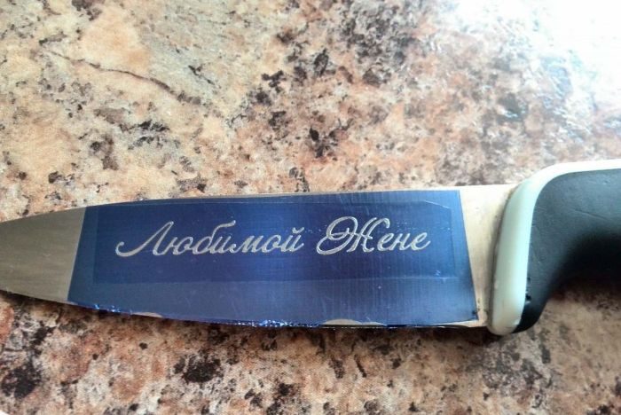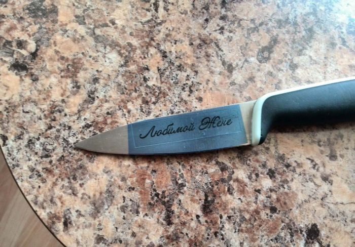Фотоотчет о том, как сделать несложную гравировку на лезвие ножа. Приятный подарок для любимой жены, девушки, мамы, бабушки или сестры.