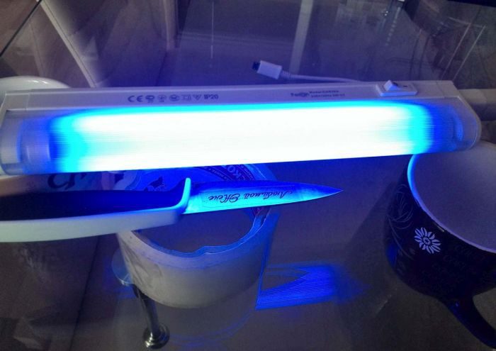 Все это дело засвечиваем под УФ лампой. Я купил на 5Вт, поэтому засвечивал порядка 10 минут на близком расстоянии, если лампа мощнее, надо экспериментировать с расстоянием и временем.