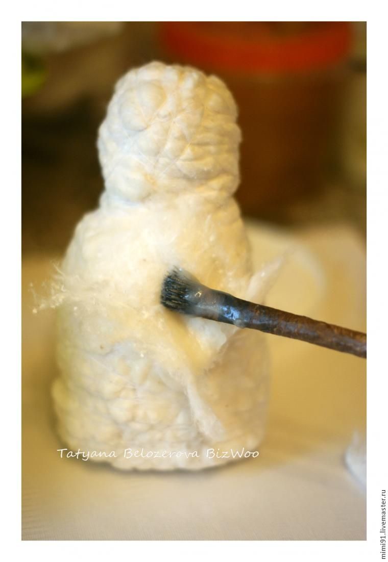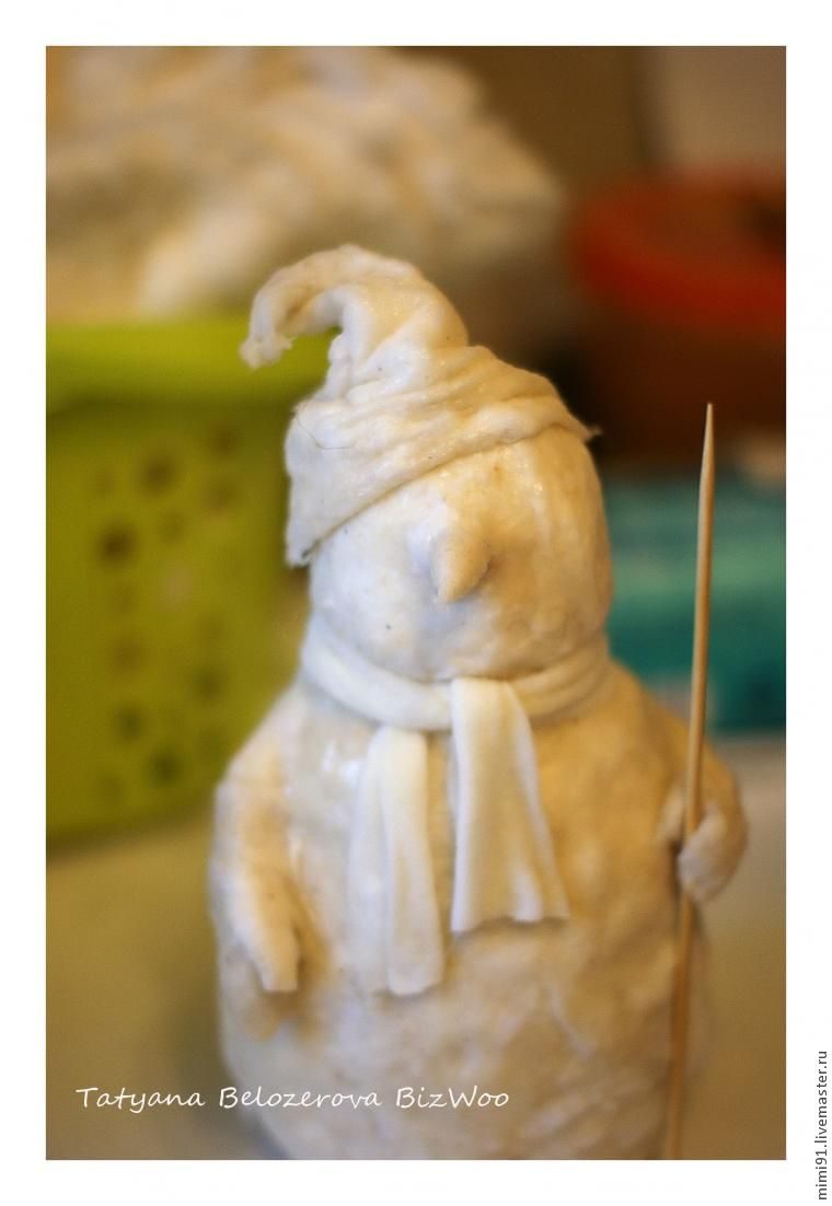 С неговик в технике ватного папье-маше
