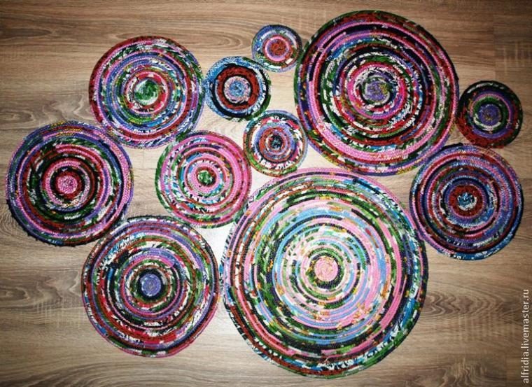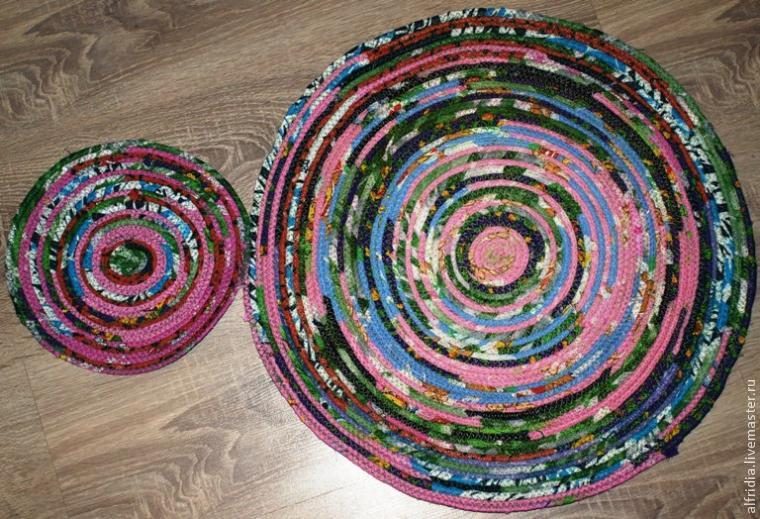 Продолжаем подготавливать коврики, используем те же кусочки ткани, чтобы коврики сочетались между собой.