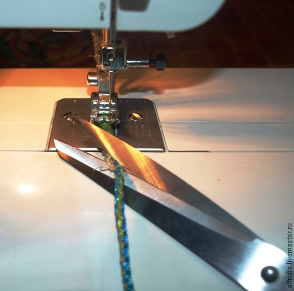 Для удобства я сразу наматываю всю полоску на веревку и быстренько прострачиваю «зигзагом».