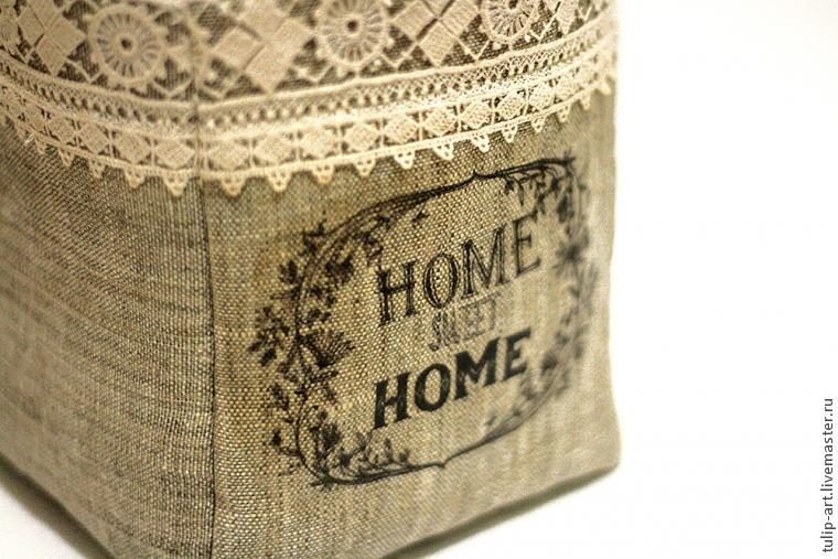 В этом мастер-классе мы будем шить несложную текстильную коробочку-корзинку, в которой можно хранить разные нужности, рукодельные принадлежности или что-то еще. Шить будем из любимого мной льна, декорировать — хлопковым кружевом и, при желании, термотрансферной аппликацией.