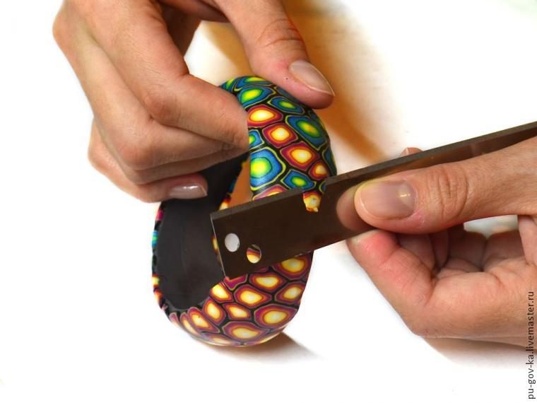 14. Лезвием срезам лишнее, формируем ровную поверхность браслета. Запекаем около 20 минут.