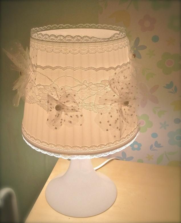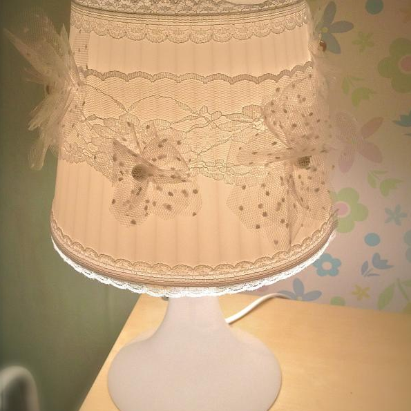 Вся работа займет совсем немного времени, главное — подобрать материалы в тон и со вкусом, а так же гармонично интерьеру комнаты, в которой Ваш светильник будет жить. Я делала бело-молочный.