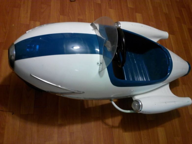 Эта машинка-игрушка попала ко мне совершенно случайно. Пришли с отцом к его товарищу пчеловоду посмотреть прицеп и во дворе увидел. В лотке для строительного раствора лежала на боку не понятная ракета с колесами.Что она там делала? Бывший хозяин собрался в металлом ее сдать.