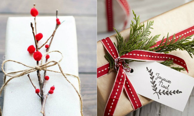 Выйдя в ближайший лес или рощицу, можно найти множество симпатичных украшений для подарка: это и традиционные шишки, и небольшие веточки, которые можно покрасить в любой цвет и украсить крохотными помпонами.