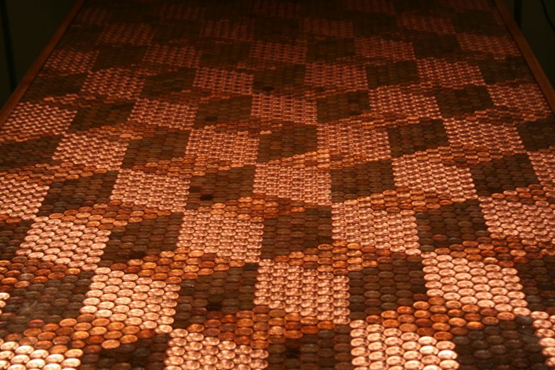 Британский пользователь под псевдонимом Callofthegame, использовал 5218 монеток для создания монолитной столешницы с необычными мерцающими геометрическими узорами